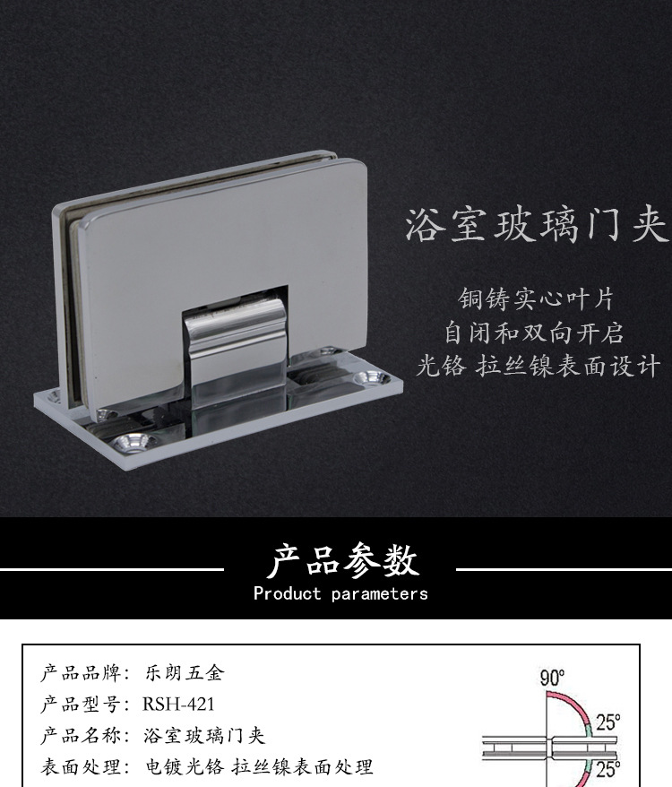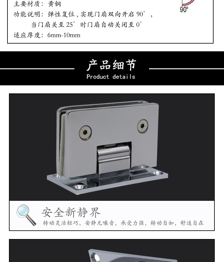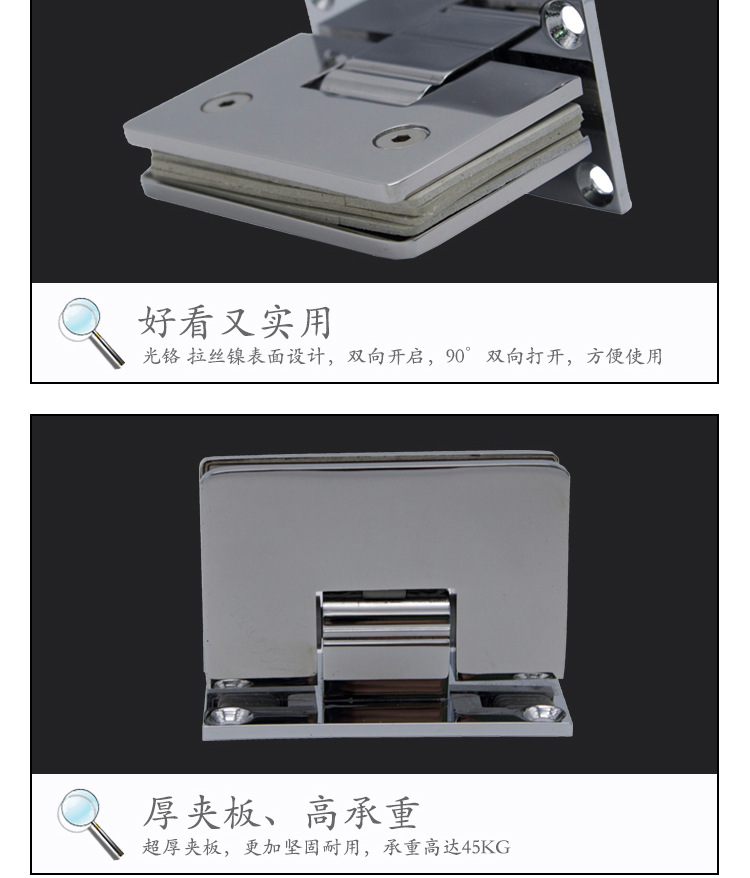 2、主要用于各種玻璃門、淋浴房門等。夾6-12mm玻璃