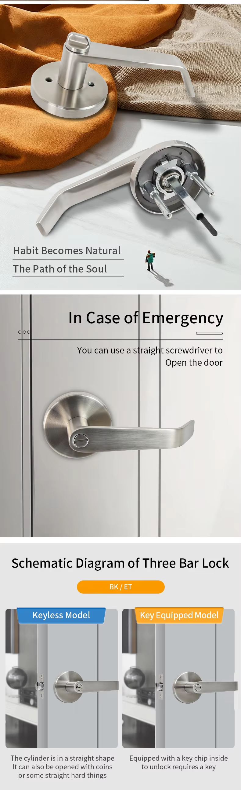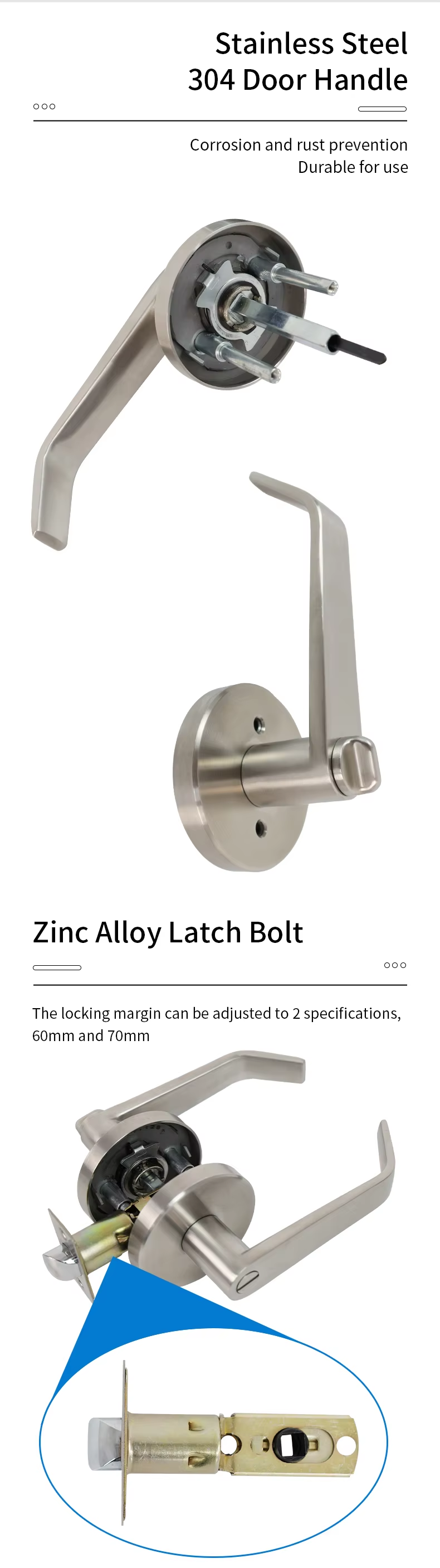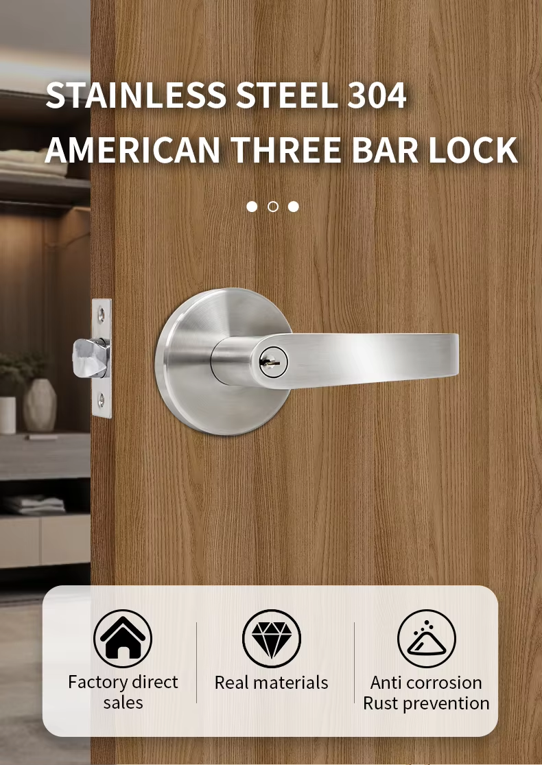 S046 Stainless Steel 304 Tubular Handle Latch Bolt Lock Keyed Model Privacy Door Lock