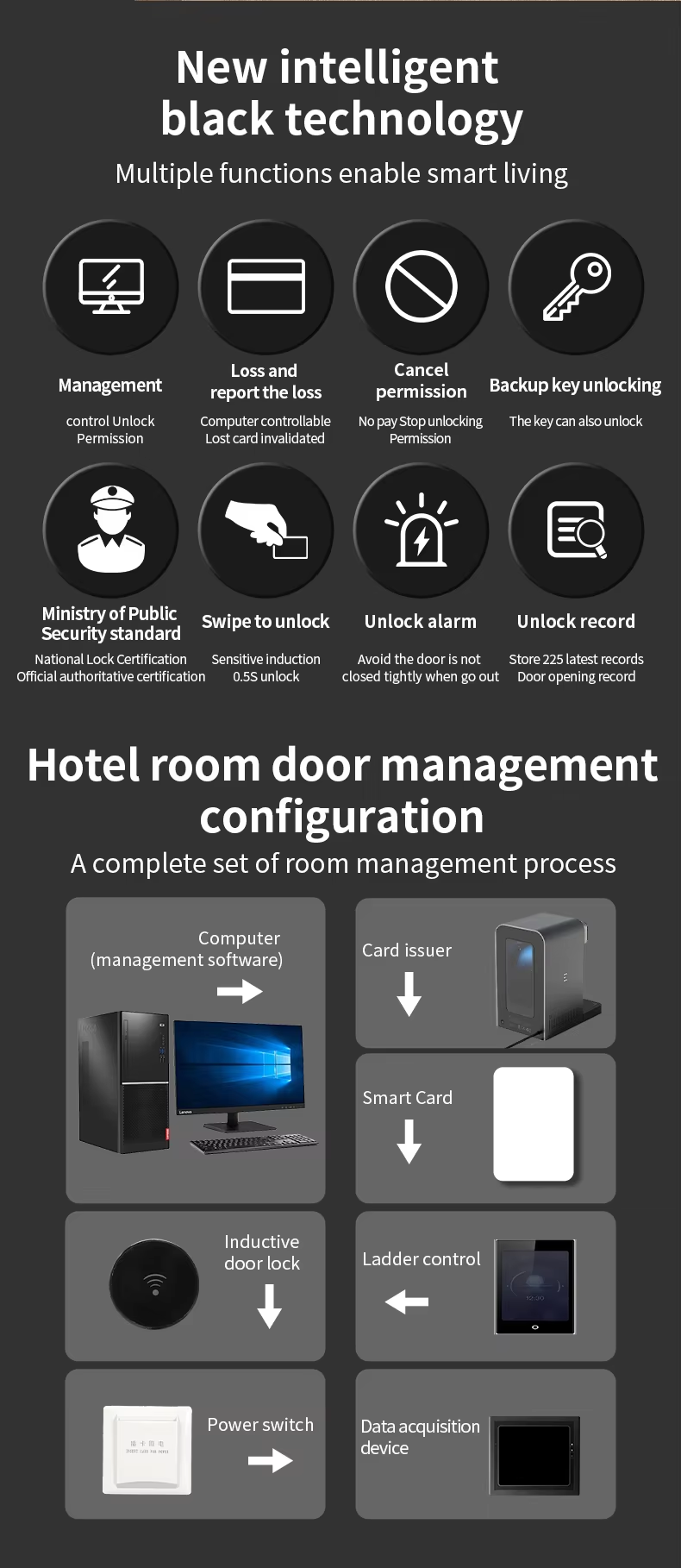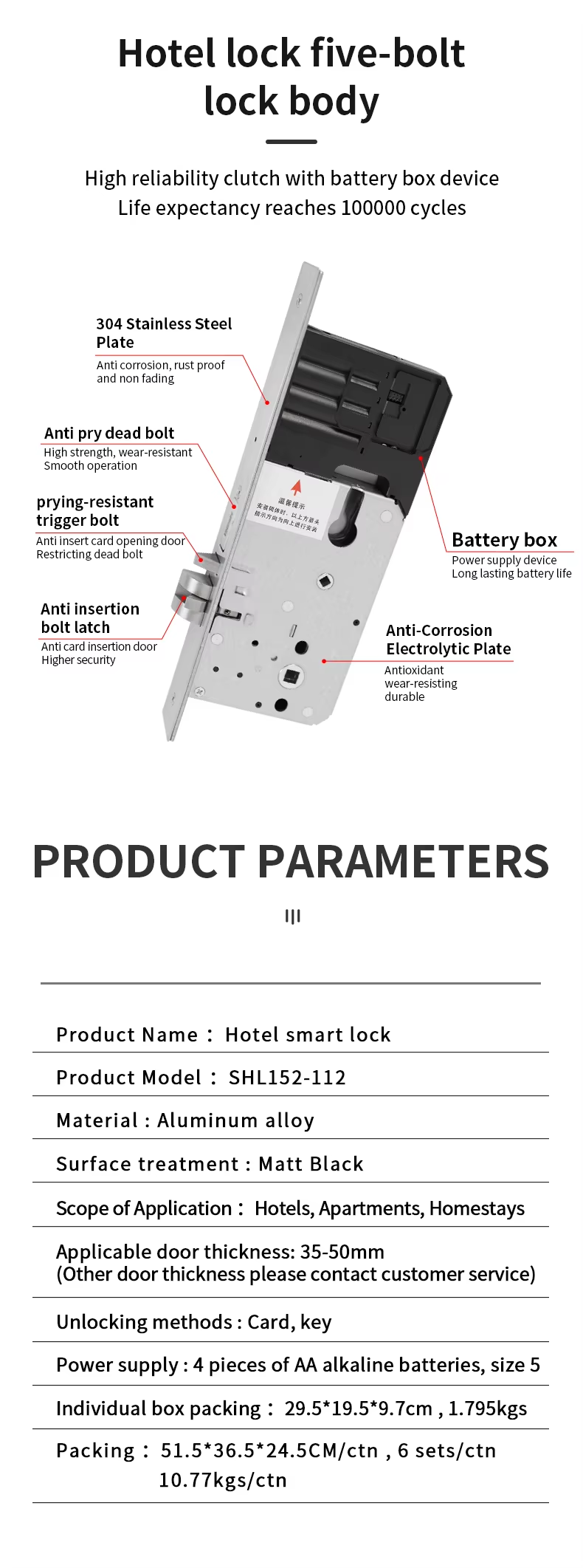 SHL-152-112 Aluminum Alloy Lever Handle High Security Hotel Smart Lock